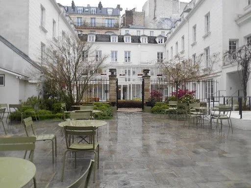 Rainy courtyard at Reid Hall, Columbia’s campus in Paris